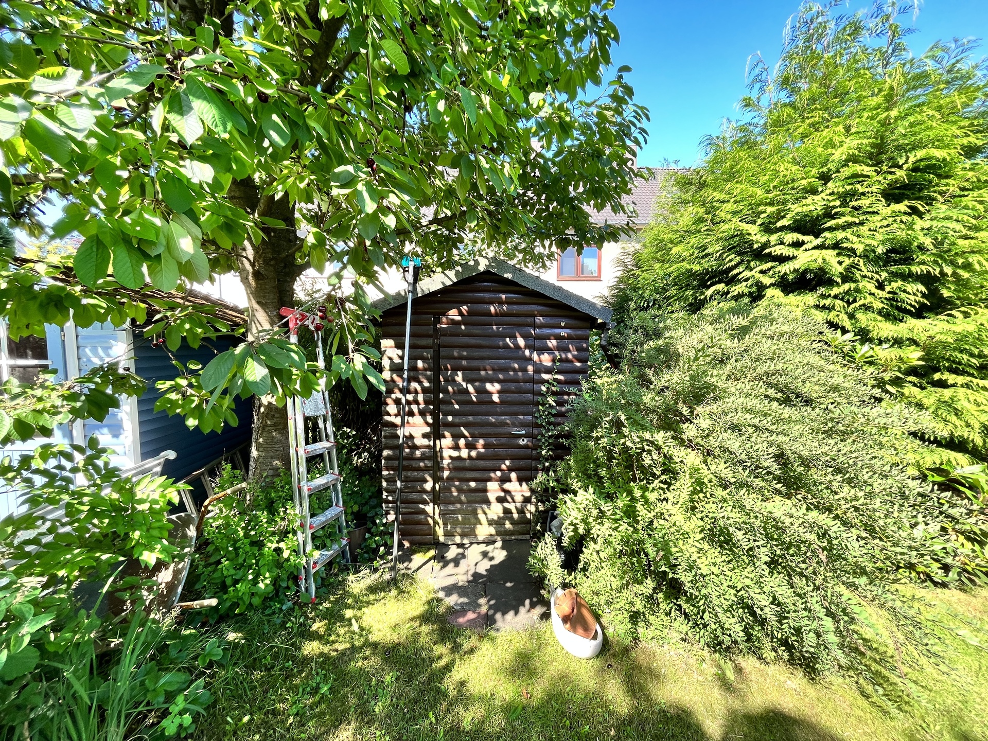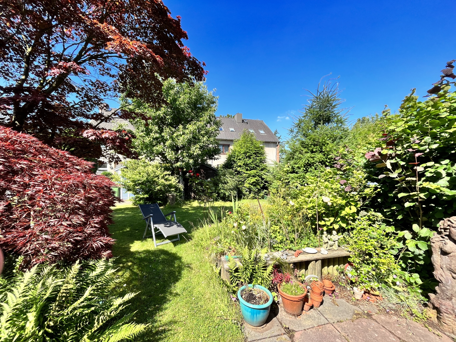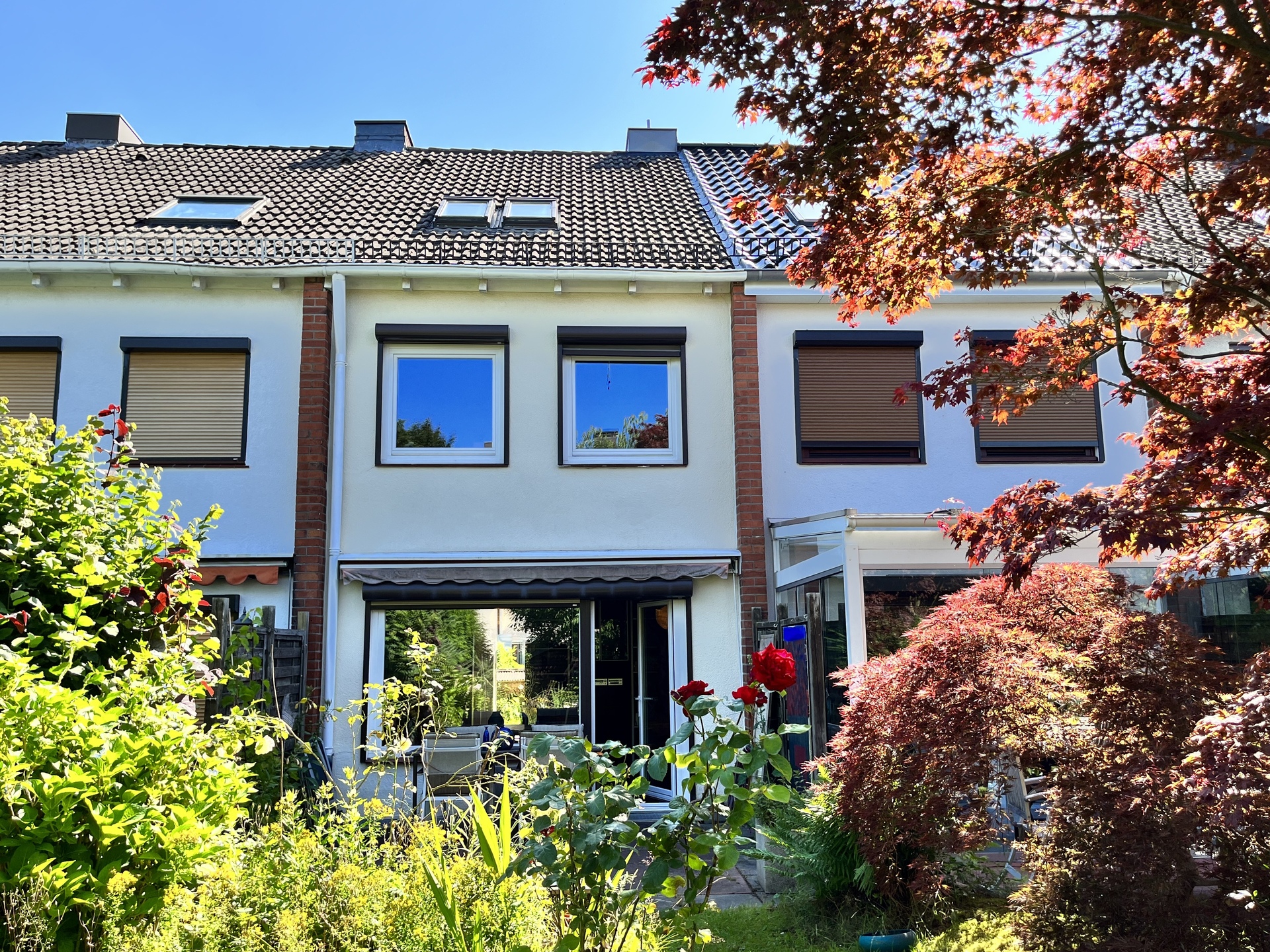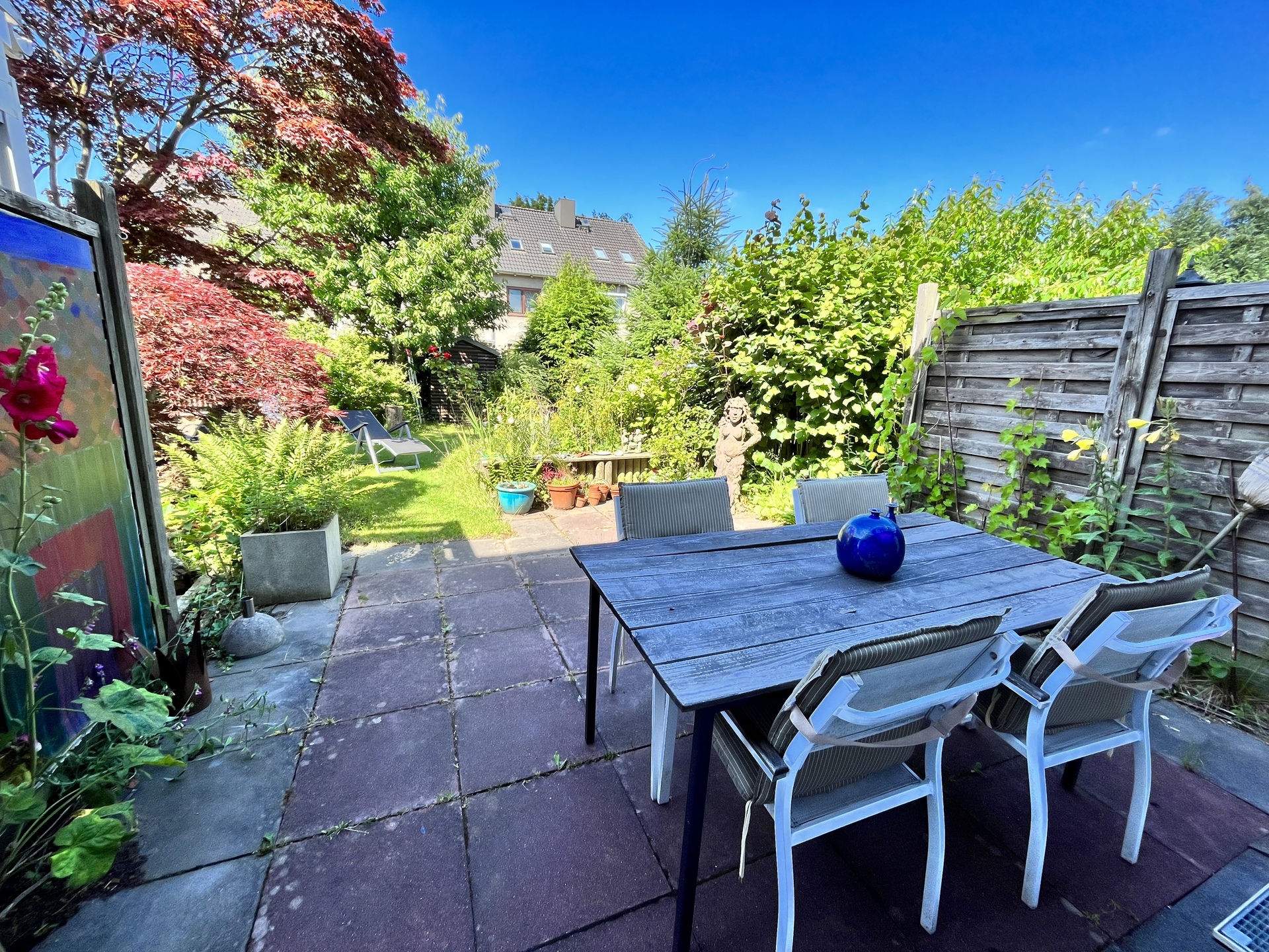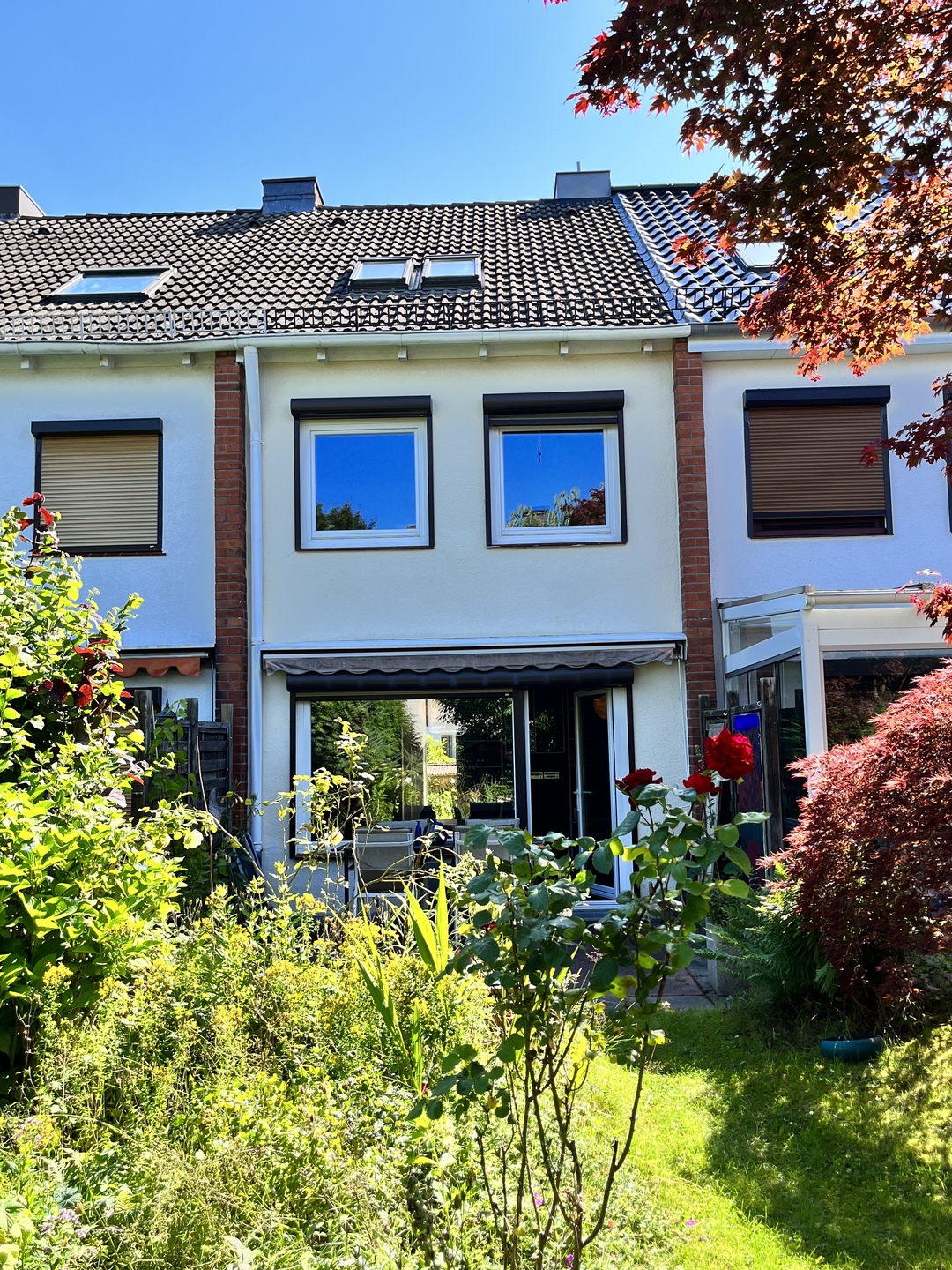 Familiengerechtes und vollunterkellertes Mittelreihenhaus in ruhiger Nebenstraße von Hamburg-Marmstorf, Baujahr 1965. Das 5 Zimmer Haus ist solide gebaut und wurde laufend modernisiert. Die Gesamtwohnfläche beträgt ca. 95 m² und zzgl. ca. 40 m² Nutzfläche im Vollkeller (3 Räume). Das sonnige und liebevoll angelegte Eigenlandgrundstück mit Terrasse und Gerätehäuschen hat eine Größe von 141 m². Zum Haus gehört ein Außenstellplatz auf dem gemeinsamen Parkplatz.
