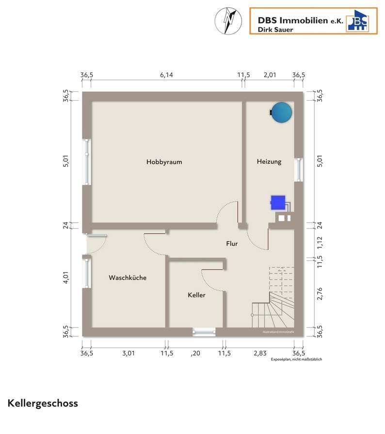 - direkter, ebenerdiger Kellerzugang mit viel Platz und einen großen, vielfältig nutzbaren Hobbyraum mit Fenster