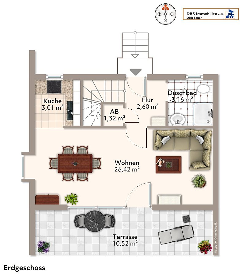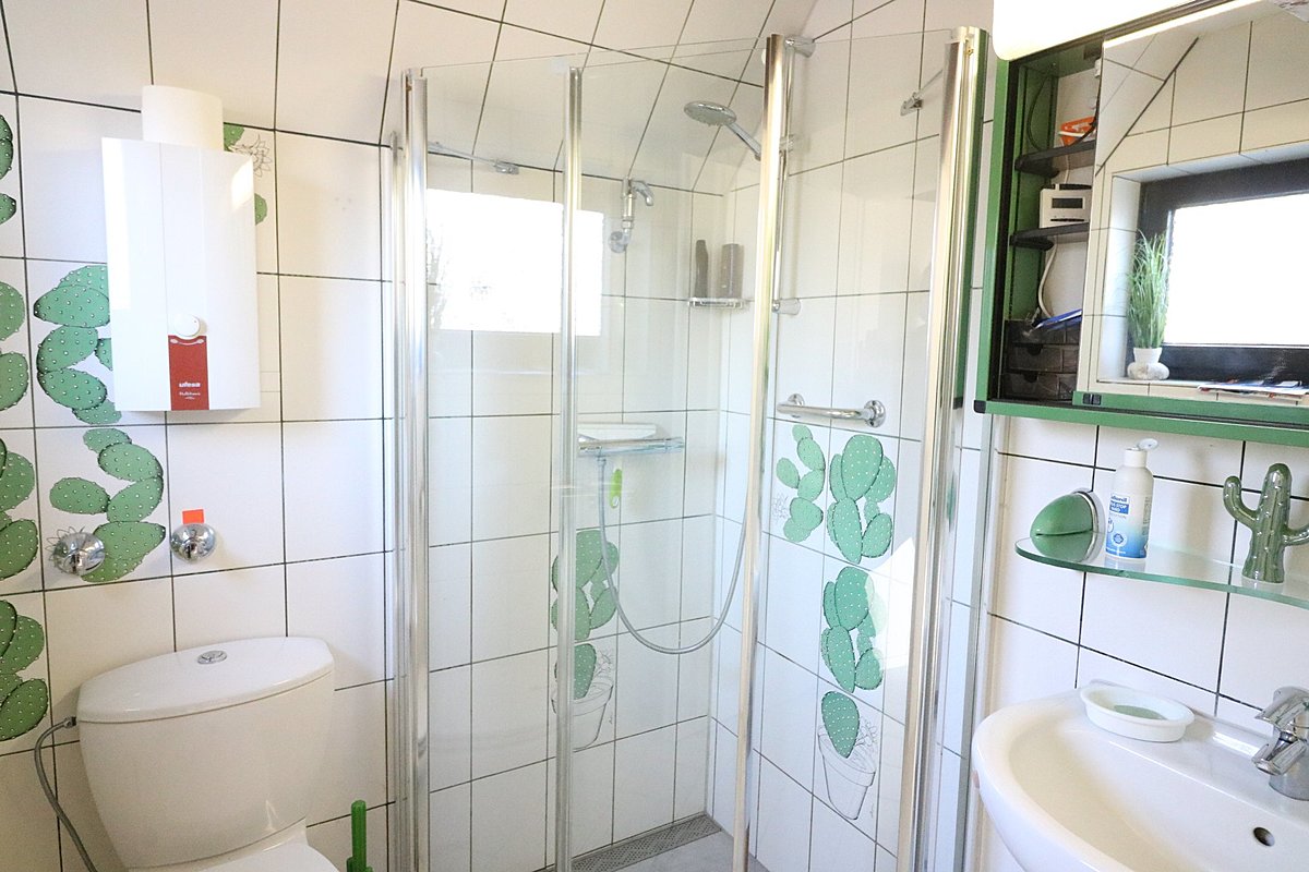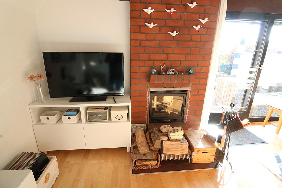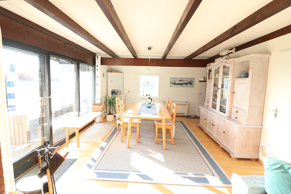 Endlich Zuhause - gemütliches und gut ausgestattetes 3 Zimmer Ferienhaus auf ca. 77 m² Wohnfläche. Im Erdgeschoss ist ein großzügiger Wohn-/Essbereich mit offener Küche und schöner Kaminecke mit Zugang auf die südlich ausgerichtete, zum Teil überdachte Sonnenterrasse. Im Dachgeschoss befinden sich zwei Zimmer z.T. mit Einbauschränken. Das Erbbaurechtsgrundstück ist nach WEG geteilt. Der angelegte Grundstücksanteil hat eine Größe von ca. 300 m².